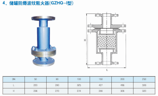 阻火器是用來阻止易燃氣體、液體的火焰蔓延和防止回火而引起爆炸的安全裝置。通常使用在輸送或排入易燃易爆氣體的儲罐或者管線上。如火炬、加熱燃燒系統(tǒng)、石油氣體回收系統(tǒng)或其他易燃氣體系統(tǒng)。