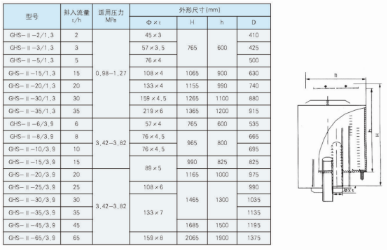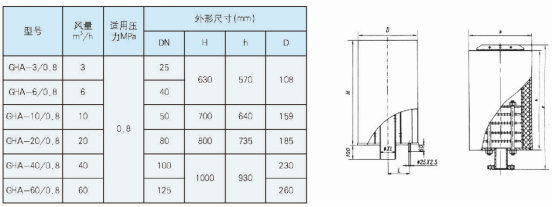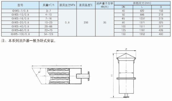 (1)本系列消聲器額定排放流量1.3MPa設(shè)計,如排汽壓力為0.8MP a選用消聲器應(yīng)比排放管徑小一級:排汽壓力為2.0MPa,消聲器應(yīng)比排放管徑大一級選用。