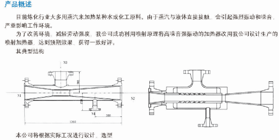 目前煉化行業(yè)大多用蒸汽來加熱某種水或化工原料,由于蒸汽與液體直接接觸會引起強烈振動和噪音嚴重影響工作環(huán)境。 為了改善環(huán)境,減輕勞動強度,我公司成功利用噴射原理將高噪